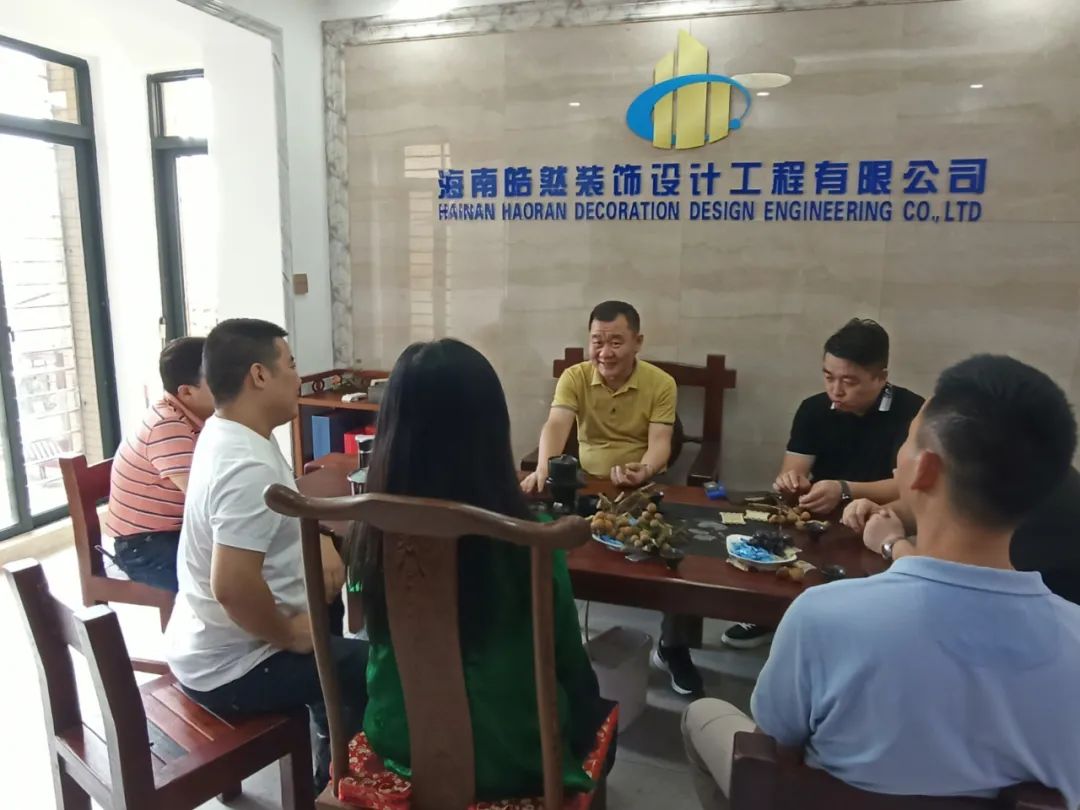 在芳园村参观学习完后,大家一起来到协会理事单位:海南皓然装饰设计工程有限公司(简称皓然装饰)走访交流。