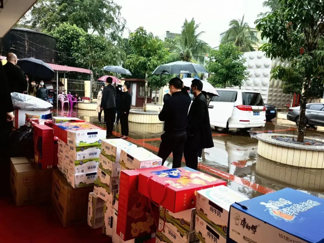 1月8日上午协会新春慰问团顶着寒冬、冒着细雨,驱车来到红旗镇看望敬老院和村中五保户的老人们,并将爱心善款、防寒衣物、N95医用防护口罩、营养品及新年物品送达海口市红旗敬老院移交给该院工作人员及五保户的手中。